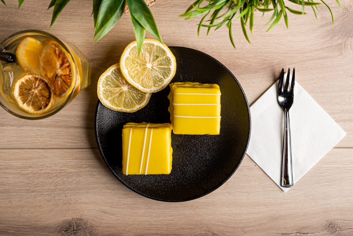 Piskóta, főzött citromos krémmel, fondannal bevonva. A friss citromkrém üde savanykássága tökéletesen kiegyensúlyozza az édes fondant bevonatot.