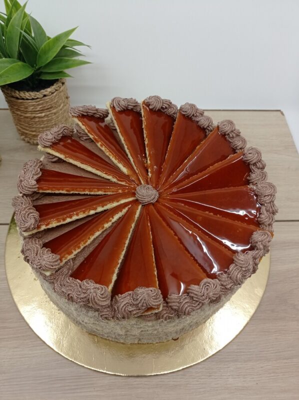 Lisztmentes kakaós piskóta és főzött karamellkrém találkozása, amely a különleges ízek kedvelőinek kedvence lehet.
