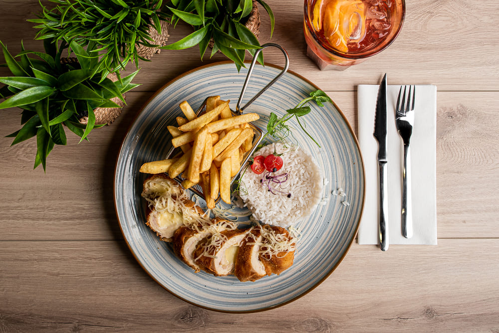 Kedvenc páros: aranybarna rántott csirkemell ropogós sültkrumplival. A gyerekek örök kedvence, de a felnőttek is szívesen visszatérnek hozzá.